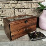 All watches deserve to be stored in the best possible way. You can store them in their original boxes and packaging or in leather rolls, but it is not practical. Instead, try one of my boxes to organize your precious watches. They are 100% handmade from solid wood and with an elegant design. The watch box has a glass window to keep dust-free. Holds 12 watches and is on two levels. The upper part holds 6 large clocks up to 54 mm, and the drawer 6 smaller ones up to 38 mm. Now you will not worry about your expensive pieces, because they will be in a safe place. This box is not only necessary for watch lovers, but it will also be beautiful furniture in your home. The perfect gift for a loved one, husband, friend, dad’s gift, or a stylish business gift. For 7 years VOLDOR 69 has been producing some of the most beautiful watch boxes on the market. Please allow me to make a beautiful box for you. To make the right choice, visit my store and see boxes with 3, 4, 6, 8, 12 slots and unique design Lichtenberg fractal burned. Box dimensions: *Width: 12 inches (30cm) *Depth 7 inches (18cm) *Height 8 inches (20cm) *Material : linden wood * Capacity: 12 pcs watch This item ships 3 to 5 business days after purchase. Orders are shipped by USPS, shipping included with tracking number. It takes 12 to 15 working days after the day of dispatch for shipments to arrive in European Union countries.